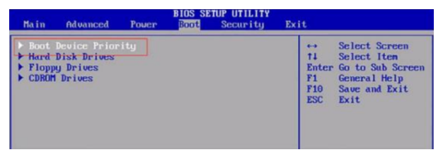 2. BOOT 탭에서 Boot Device Priority를 선택합니다.