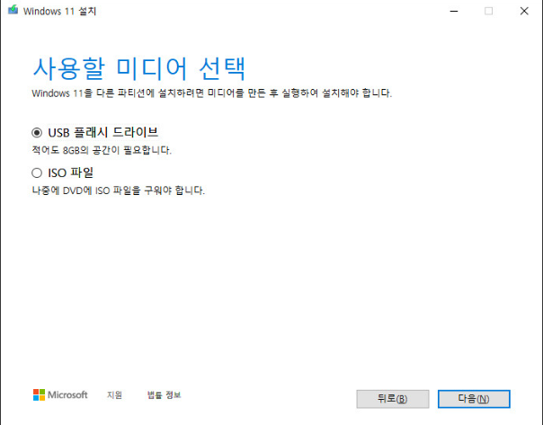 다음에는 USB 플래시 드라이브와 ISO 파일 중에서 선택할 수 있습니다.