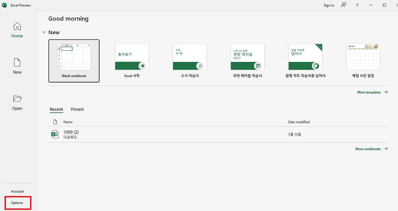 5. 좌측 하단 옵션(Options)을 선택합니다