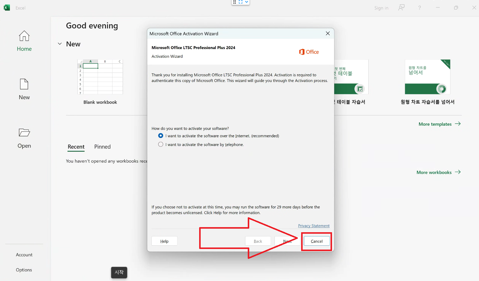 10. 창이 뜨면 Cancle 눌러주세요.